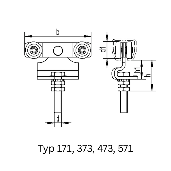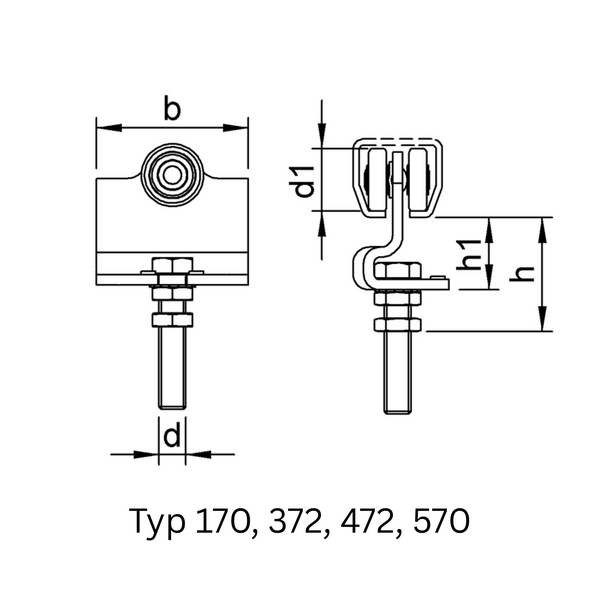 | 170 | Rollapparat einpaarig | 30 | 100 | 50 | 41+10 | 23.5 | 22 | M10x40 |