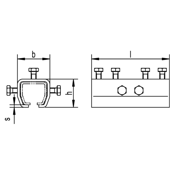 | Größe | für Schiene | b (mm) | h (mm) | l (mm) | s (mm) | |||
