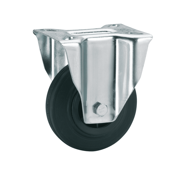 | Außen Ø / mm | Tragfähigkeit / kg | Bauhöhe / mm | Radbreite / mm | Plattengröße / mm | Lochabstand / mm | Loch Ø / mm | ||
