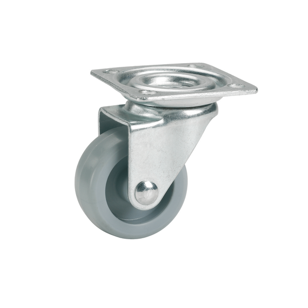 | Außen Ø / mm | Tragfähigkeit / kg | Bauhöhe / mm | Radbreite / mm | Plattengröße / mm | Lochabstand / mm | Loch Ø / mm | ||